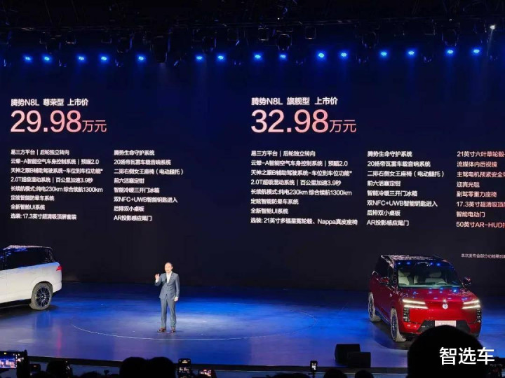 腾势N8L和N9相比,起售价便宜了9万元,有业内分析称两款车可能相互内耗。