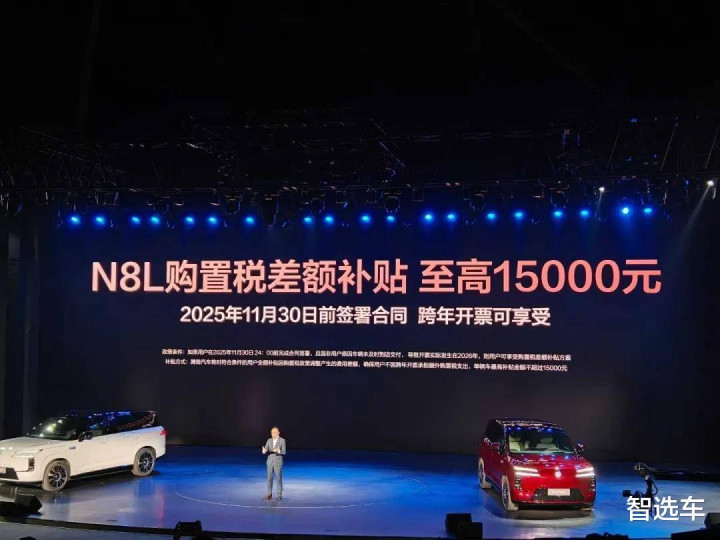 但是腾势N8L提前给大家吃了颗“定心丸”,只要在11月30日24点前完成合同签署的用户,如果因非用户原因车辆未及时交付,导致开票实际发生在2026年的话,腾势提供最高1.5万元的购置税差额补贴。